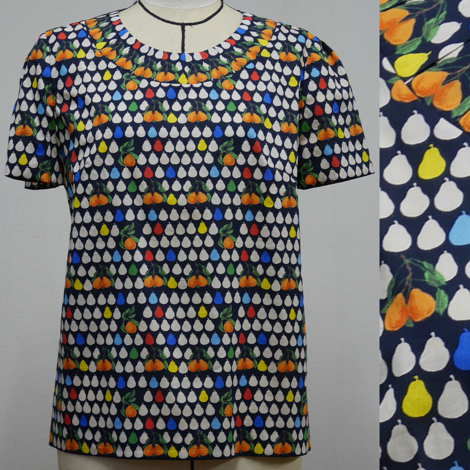 長方形の生地にタックをとり、特定のプリント部分のみが出るようにしました。