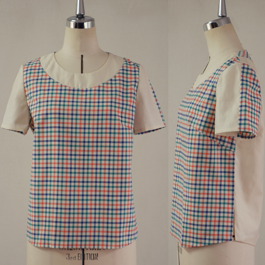 前身頃に使ったチェックの生地を持参されて、「ブラウスにしたい」、というお話でした。