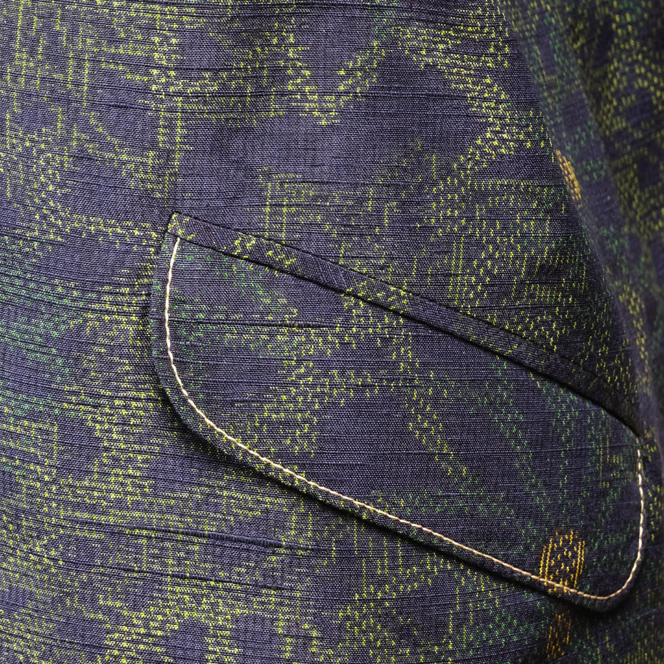 普段使いができるようにと、やさしいカーブを描くシャツカラーの、シンプルなデザインで、ステッチがポイントです。
