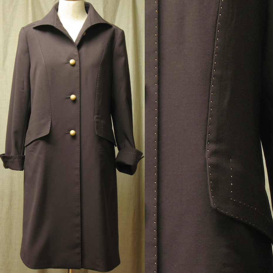 茶色のウール地に、薄い黄色のハンドステッチを、ポケットなどのポイントには二重にほどこしました。
