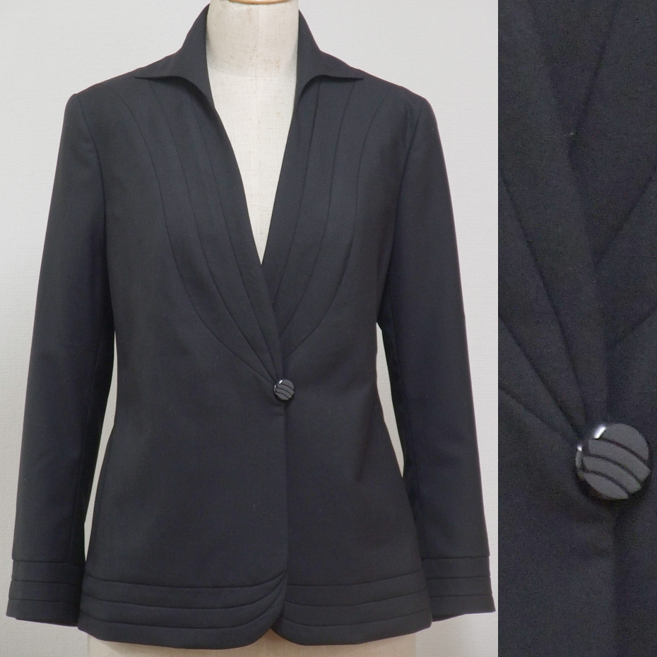 このグレーのウールのジャケットのポイントは、「切り換え線」