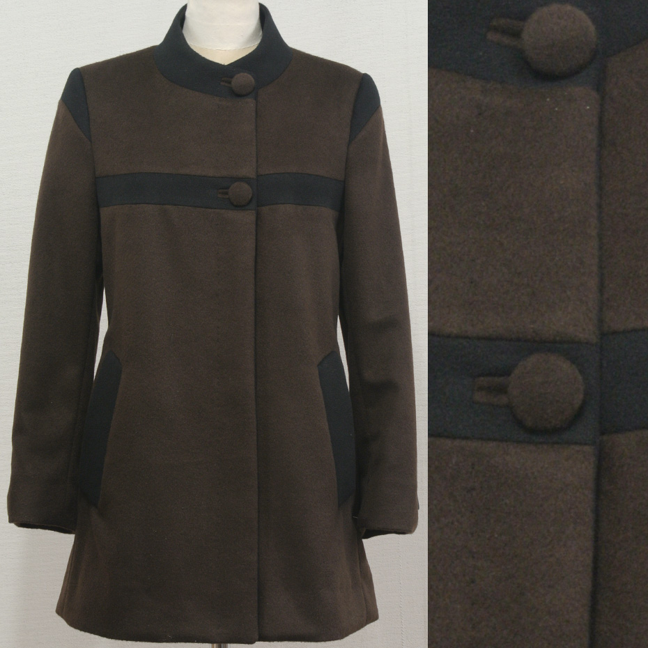 黒と茶色のカシミヤ生地を、ちょっと複雑に組み合わせ、リズム感を持たせたショートコート。