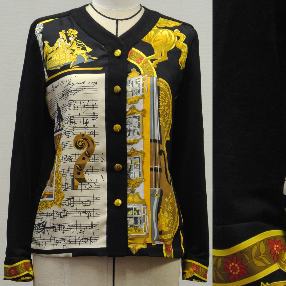 スカーフ一枚に、色を合わせたジャージの生地を追加すると、こんなブラウスを作ることができます。