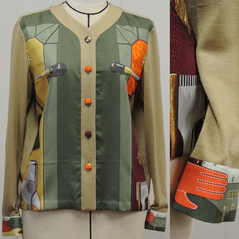 スカーフ一枚に、色を合わせたジャージの生地を追加すると、こんなブラウスを作ることができます。