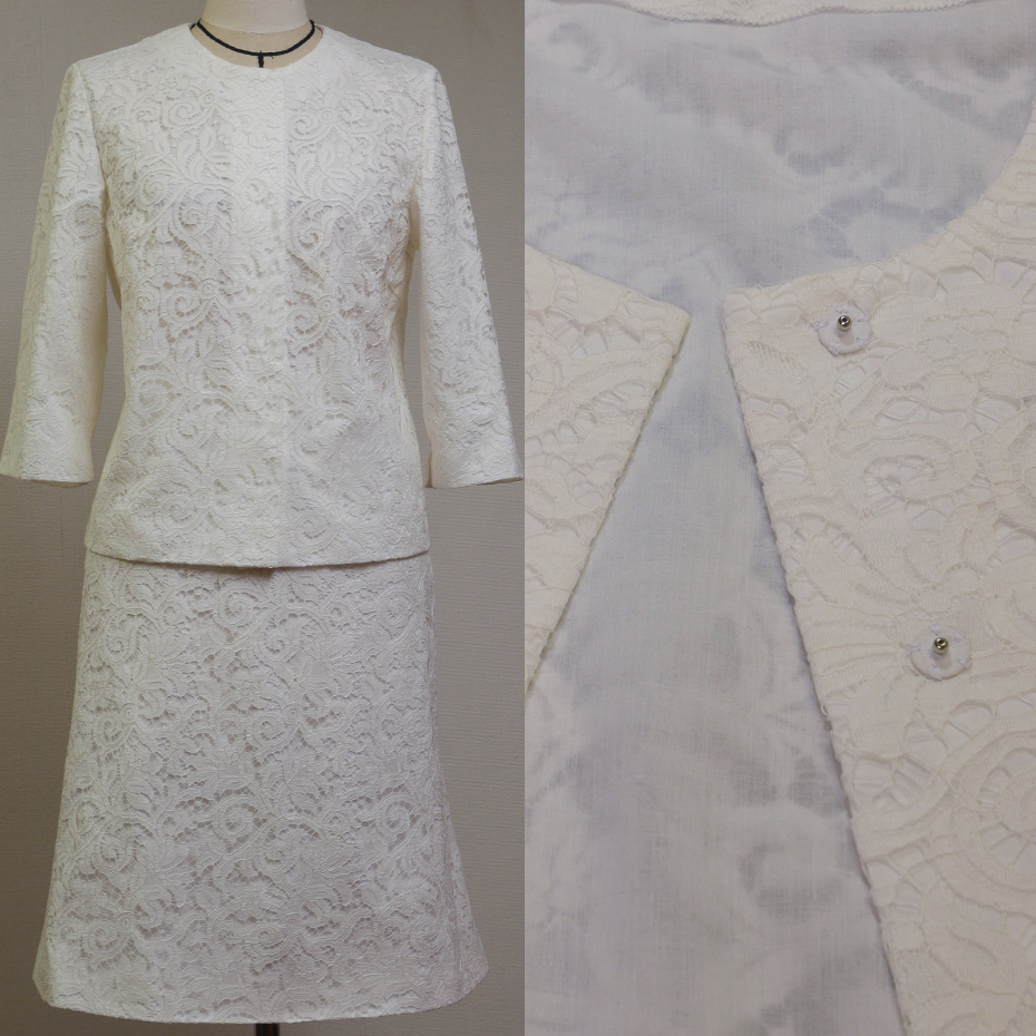 素材の良さを活かすようデザインした、レース生地のスーツ。
