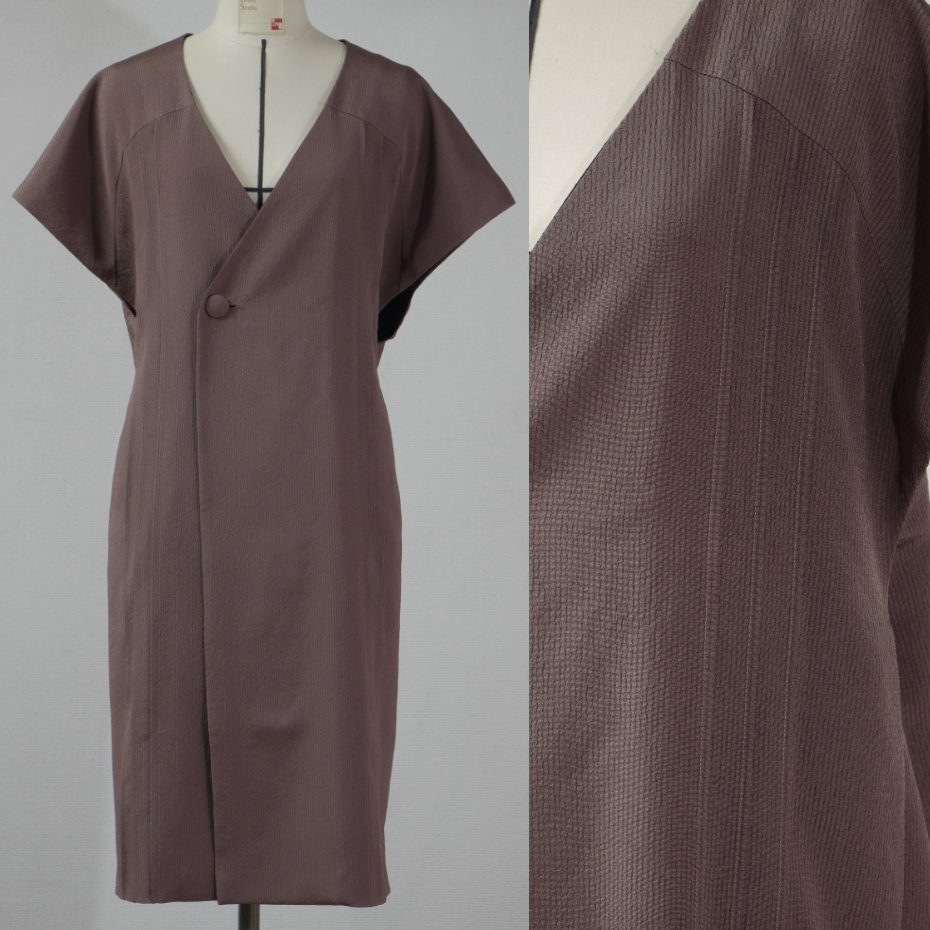 服をつくる上で幅が狭い着物の生地は、形を考えることの制約が多く、そのために余分な切り替え線が入ることもあるのですが、それをいかにデザインの力で美しく見せられるかがポイントだと思います。