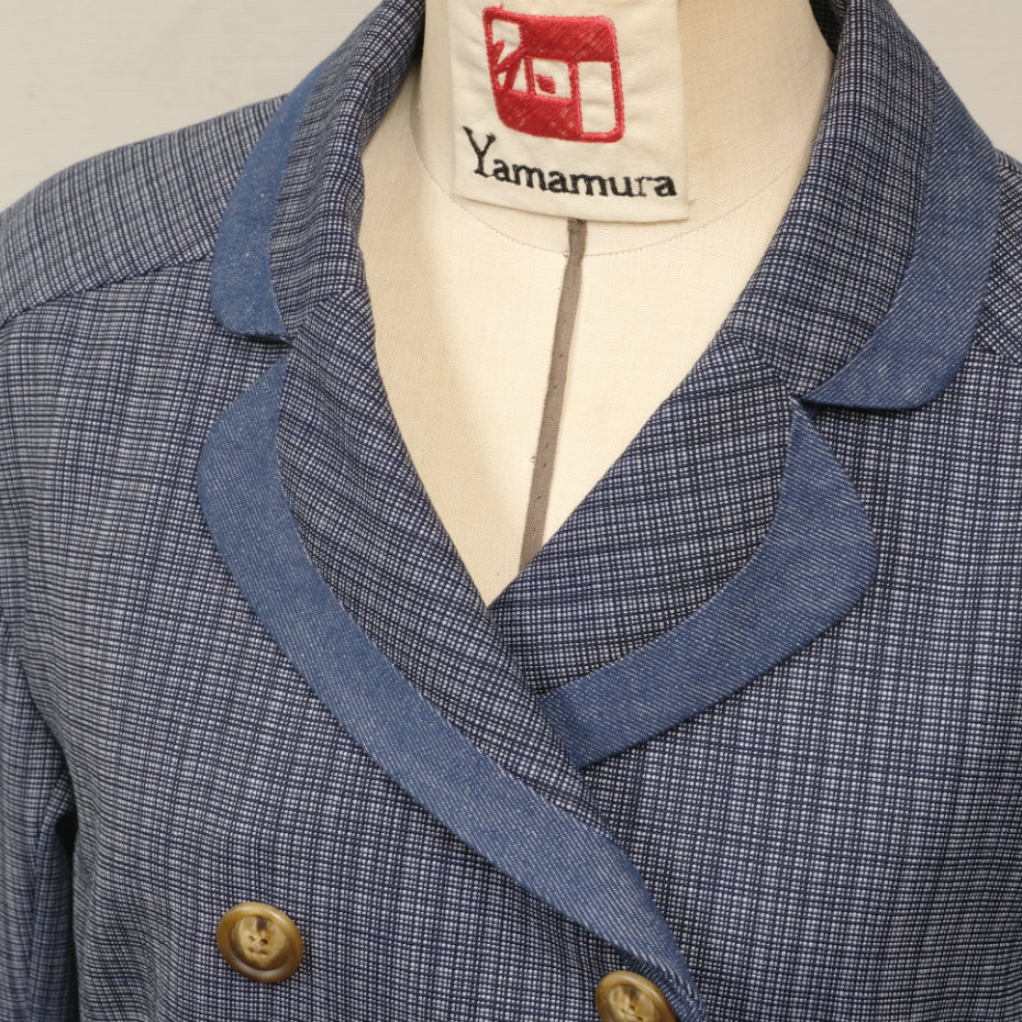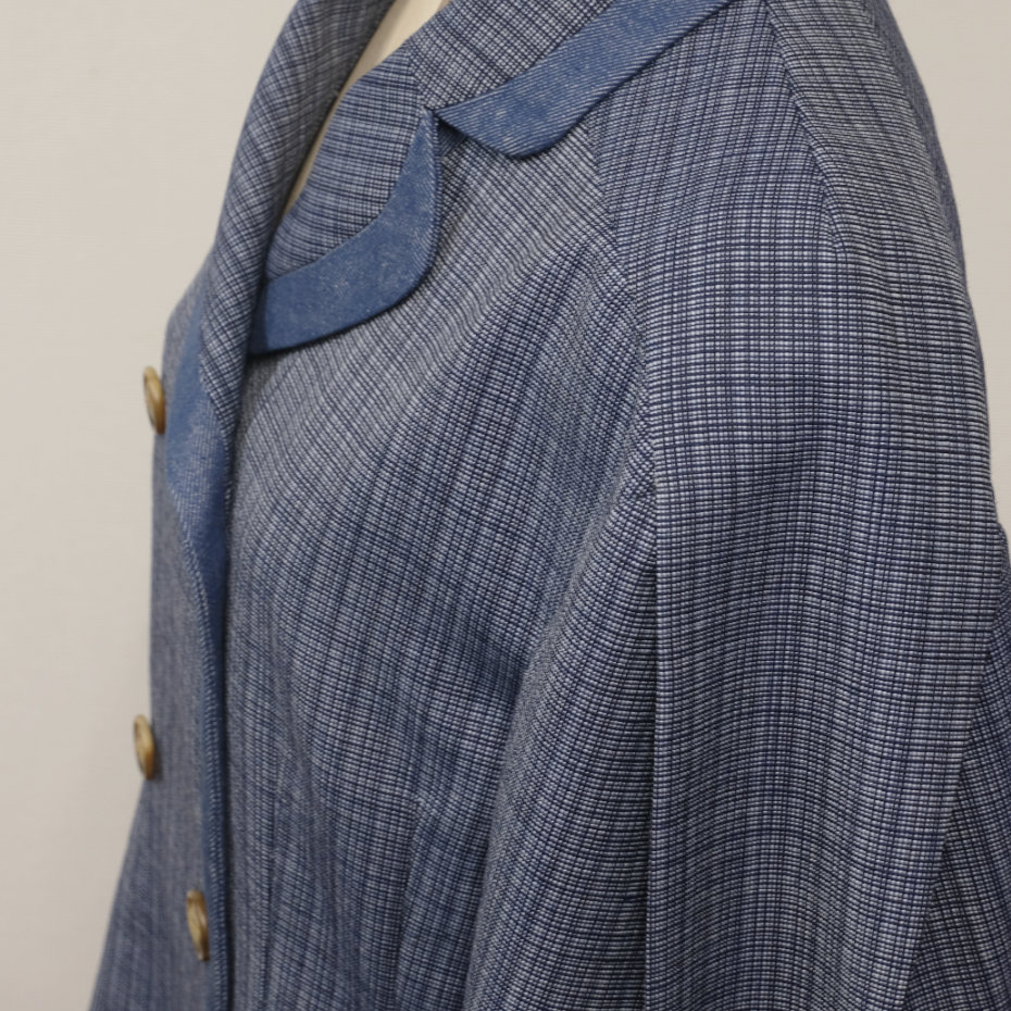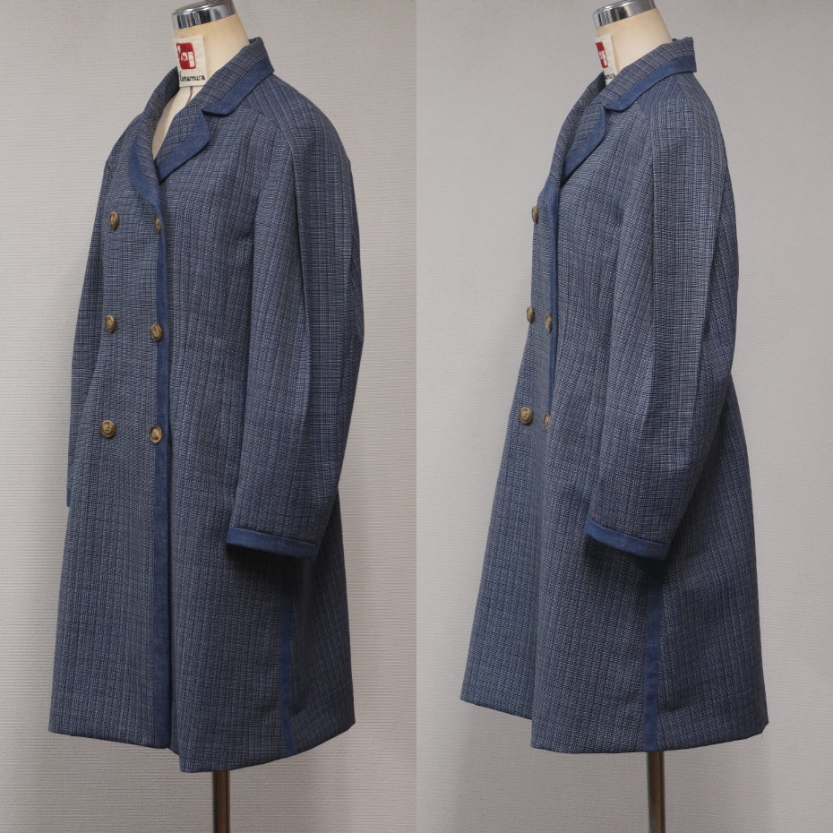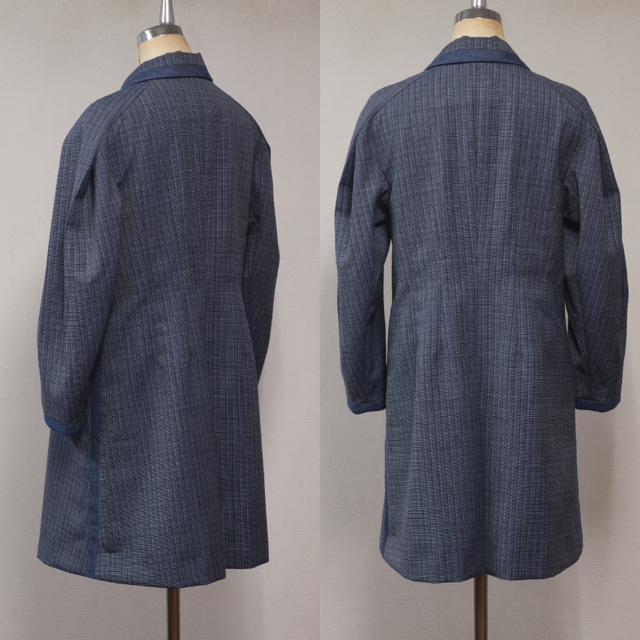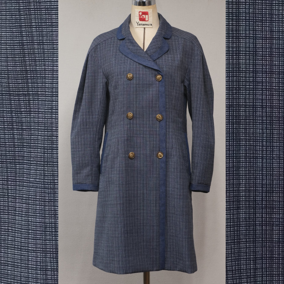 アンティークの紳士服地を集め、現代のデニムと組み合わせて一着のコートに仕立てました。