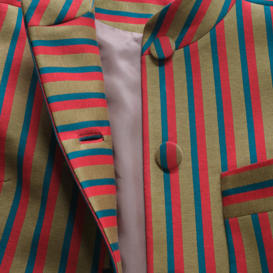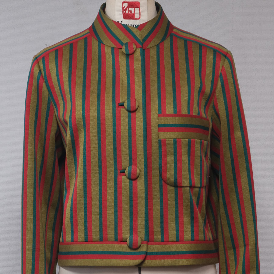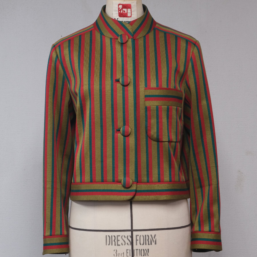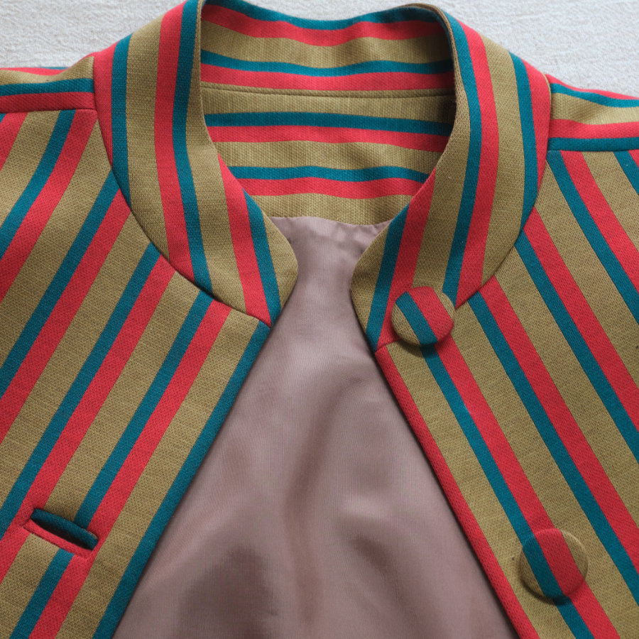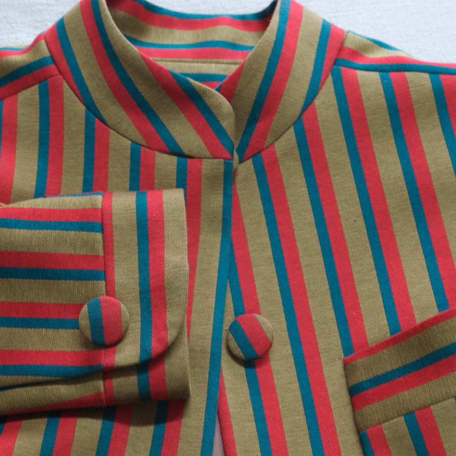 しっとりとした質感がとても美しい、ヴィンテージもののストライプ綿ジャージを、短めのジャケットに仕立てました。