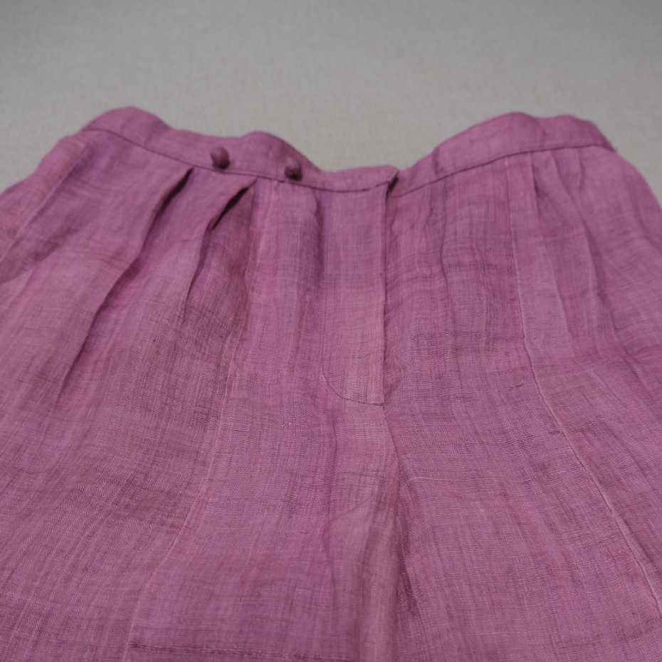 この、麻のピンクのワイドパンツスは、スカートからのリメイクです。