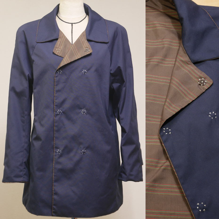完全に裏地として用いることも出来ますが、このショートコートのように、少しだけ見せる方法もあります。