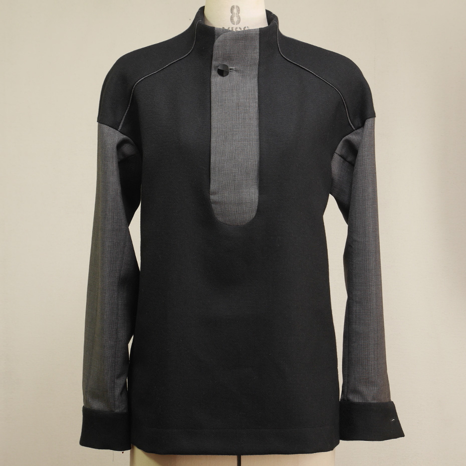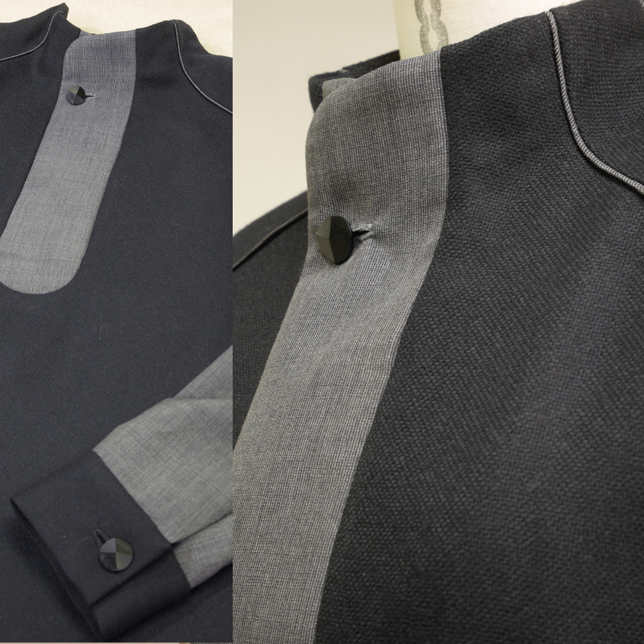 そのまま衿に向かって立ち上がる、肩あたりの切り替え線が、「マイブーム」なのか、いろいろと試していて、今回は、切り替えがカーブになっていたり、ポケットがあったり、少し複雑な構造にしてみました。