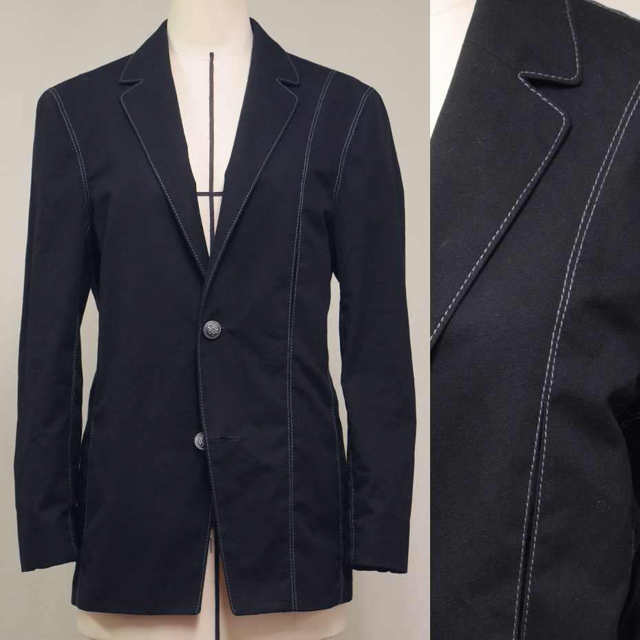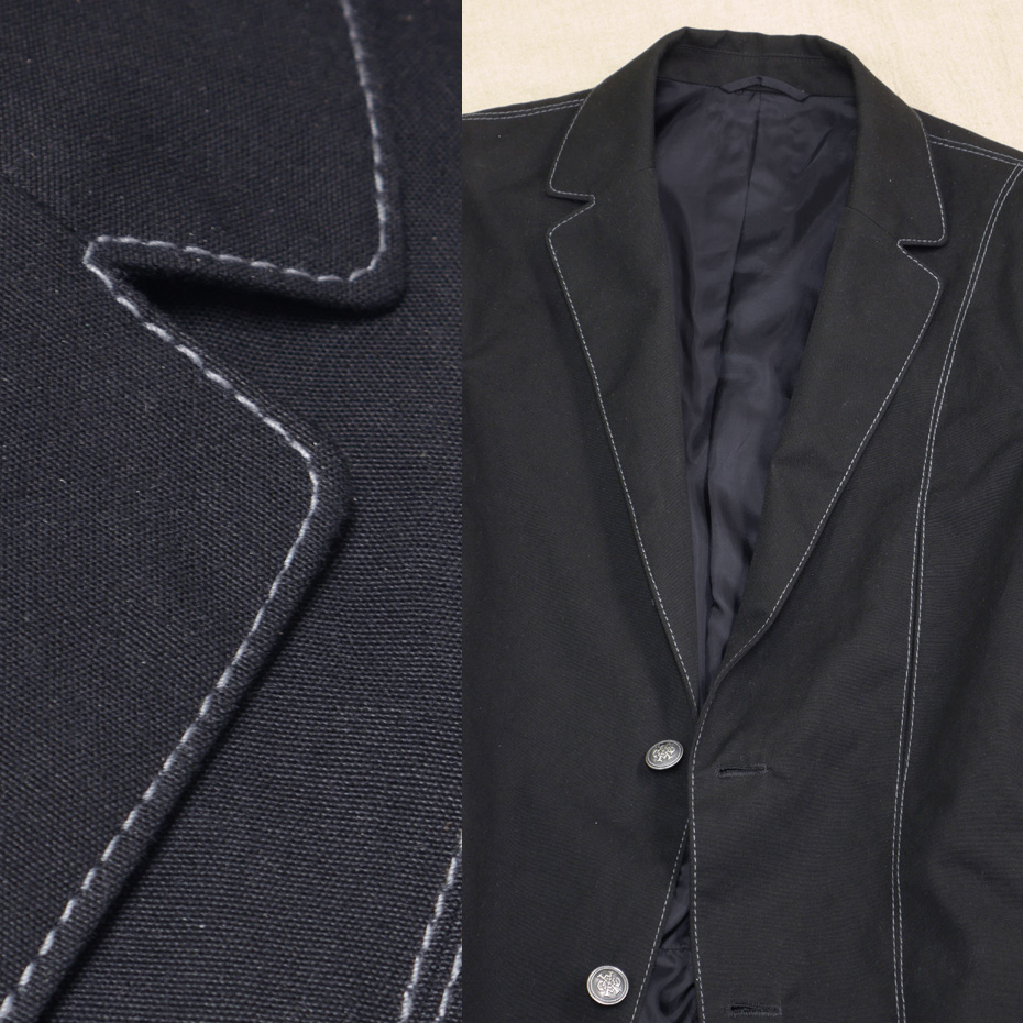 縫い目の際にかけられたステッチを、コバステッチと言いますが、このジャケットのように、割った縫い代の両方にかけられたものを「両コバ」と呼ばれています。