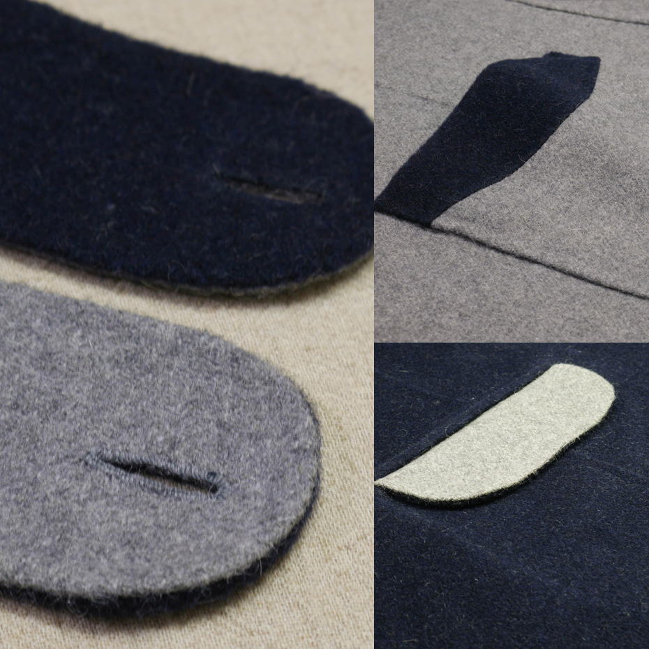 どちらの面も、生地を同色のボタンホールになり、この、一見すると気づかないことが、けっこう難解な技術なんです。