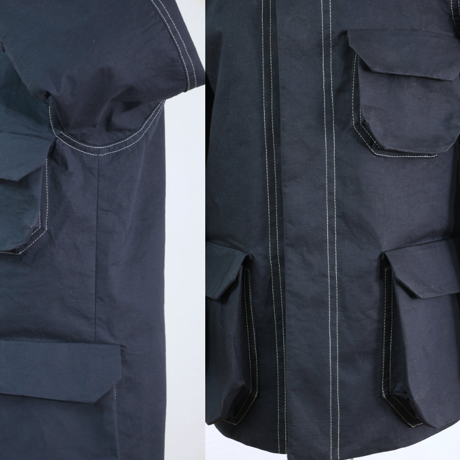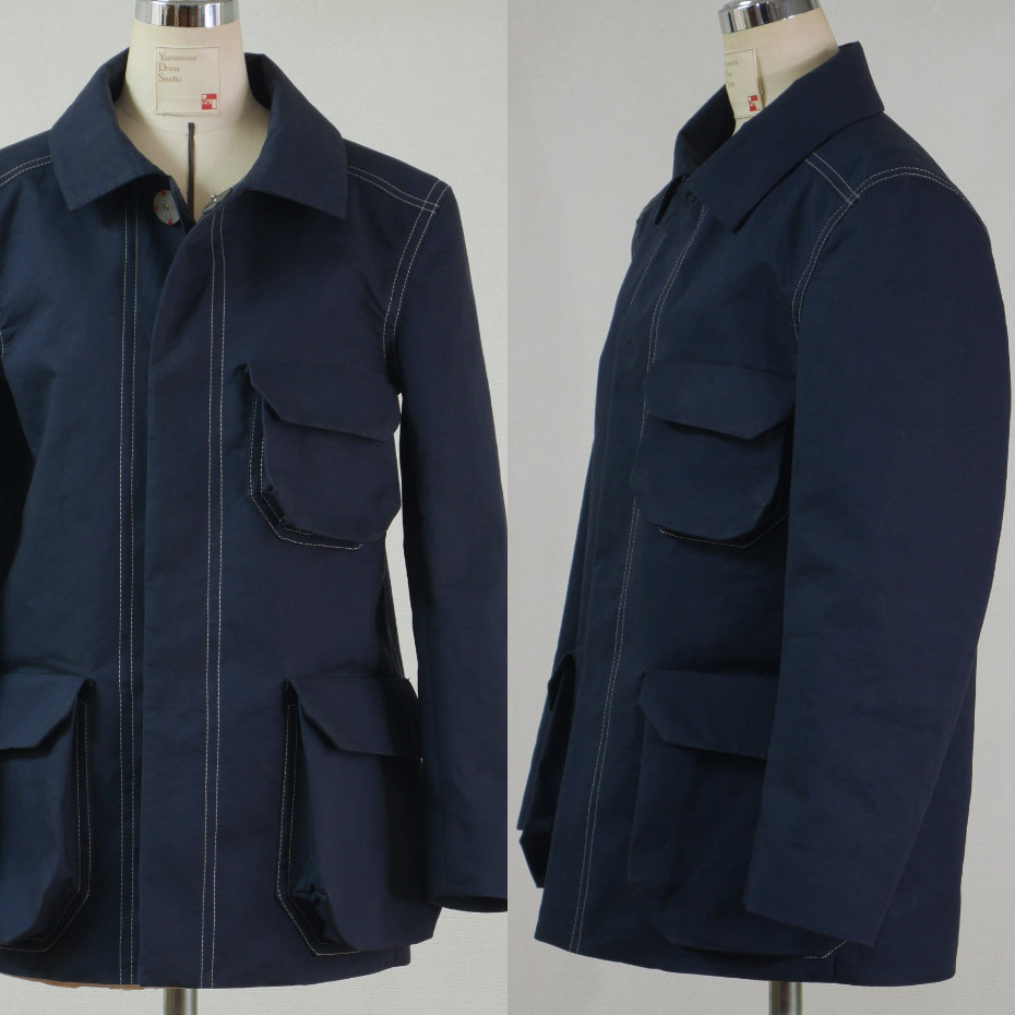 主に舞台衣装の世界で用いられている、「可動性」を増す袖付けの手法を、メンズジャケットに応用し、そのことによって、内袖がちょっと不思議な形をしています。