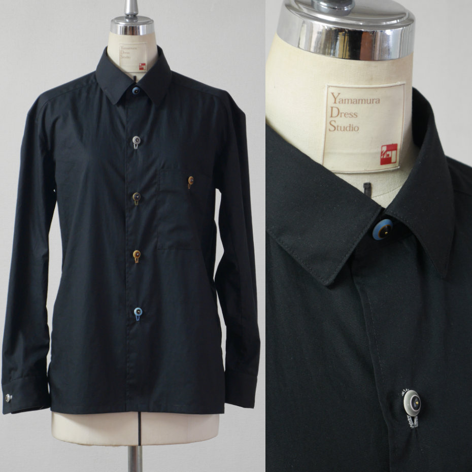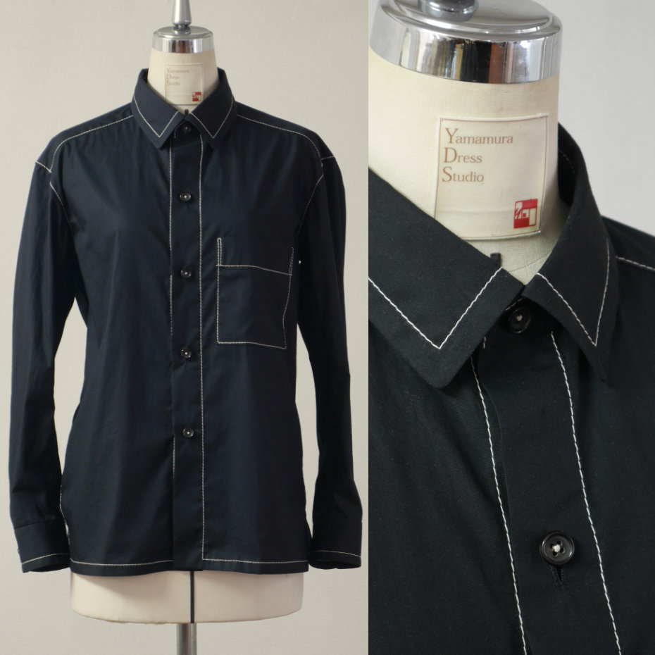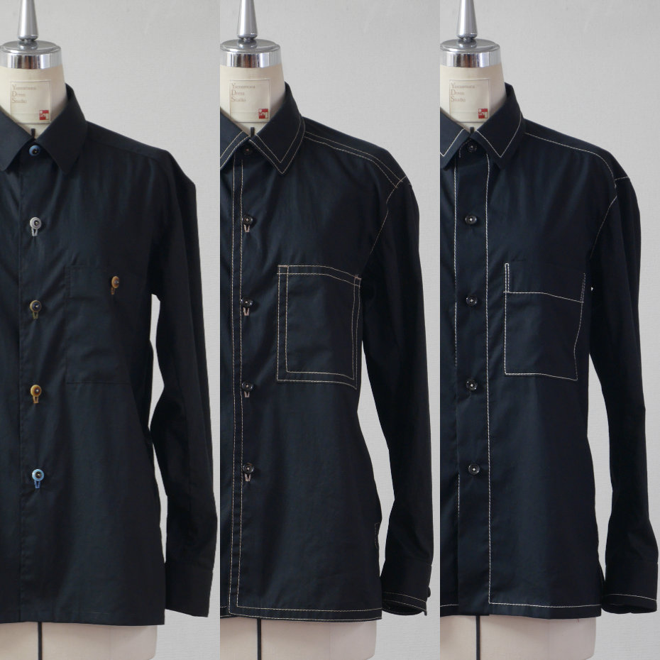 この3枚のシャツは、同じ生地、同じ型紙から作ったもので、違いは、ボタン、ステッチの糸と、その位置のみです。