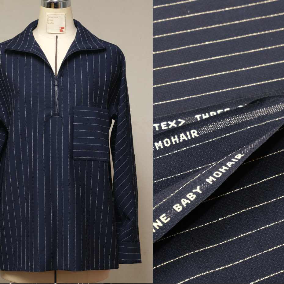 一転もののヴィンテージ紳士服生地が継続的に手に入るんですけど、これを紳士服に仕立てるのではなく、カジュアルな服や、女性用に仕立てると面白いのではないかと思い、今回はカジュアルなシャツに仕立てました。