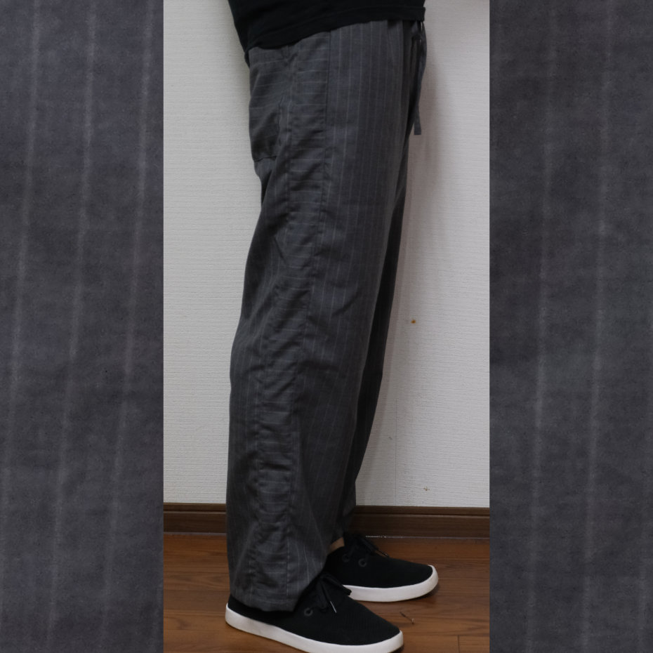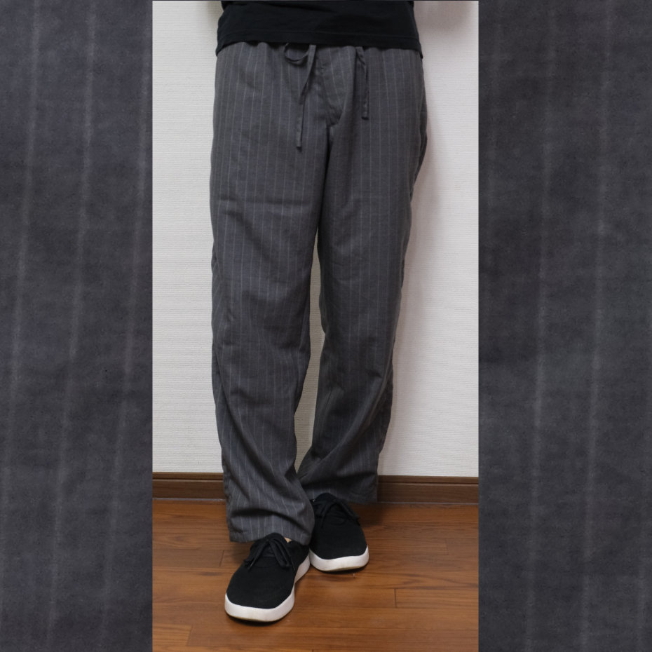ストライプが縦横に交差させるデザインの、スポーツウェアのような仕立てのパンツは、最高の肌触りの日常着です。