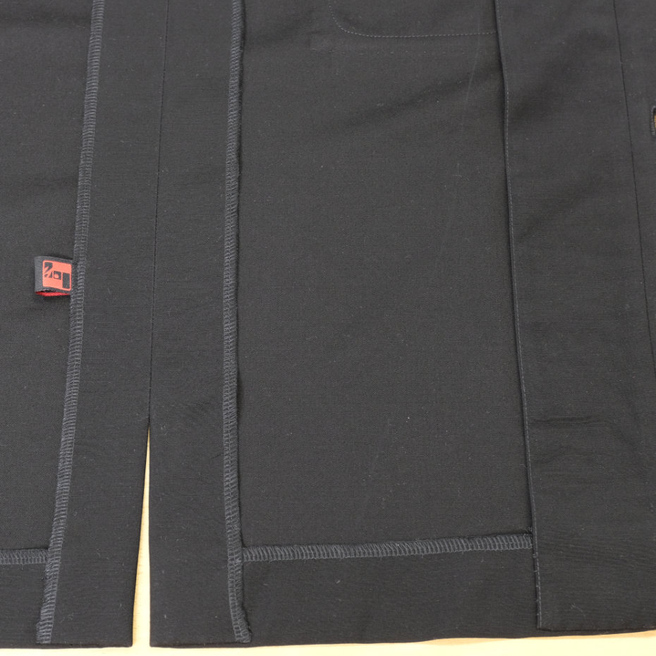 また、「出口」の環境問題の対策として、将来のリサイクル時の解体しやすさを考え、生地の他に、糸とボタン以外は一才用いずに作りました。