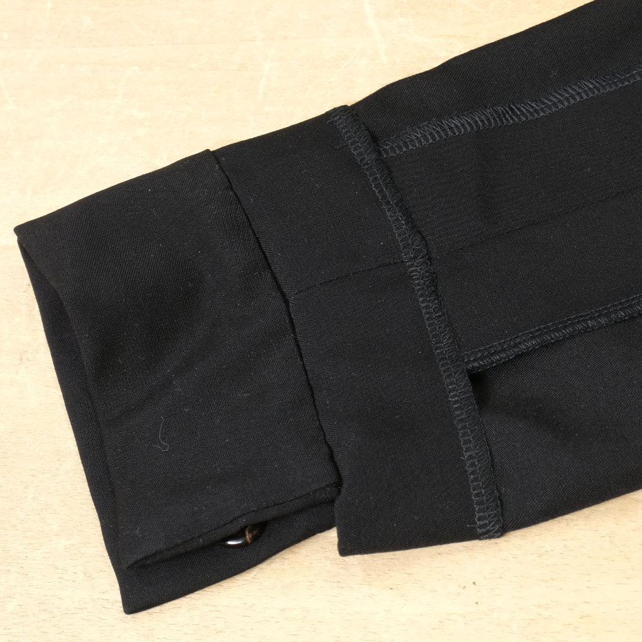 このウール素材のシャツは、幅や丈のリフォームが容易な構造で、身頃は、幅は両身頃で10センチ、丈は3センチ、袖は、幅が5センチ、丈は3センチ、程度なら出すことができ、もちろん小さくすることも容易です。