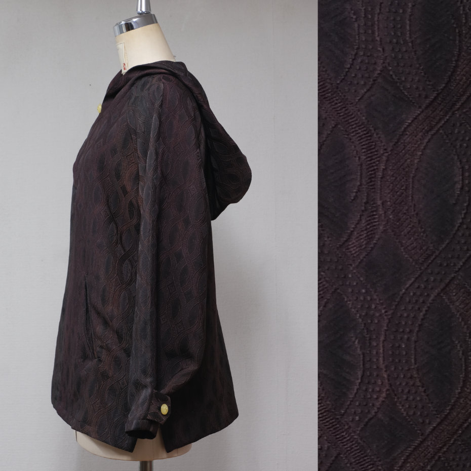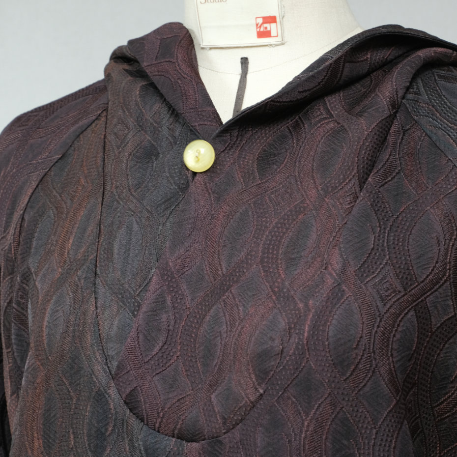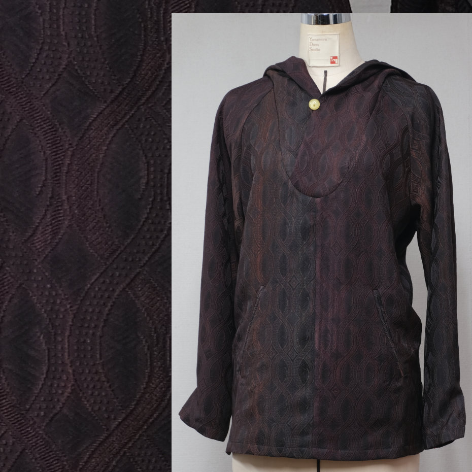 着物地を用いた、フード付きのシャツです。