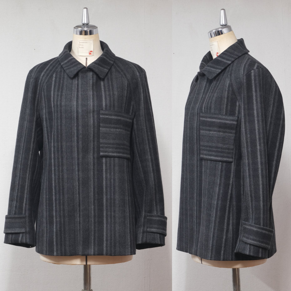 この構造は縫製が難しく、上着のデザインの選択肢の一つとして定着するかというと、つくる人はあまりいないと思いますが、技術的な可能性は、常に追求してゆきたいテーマの一つです。