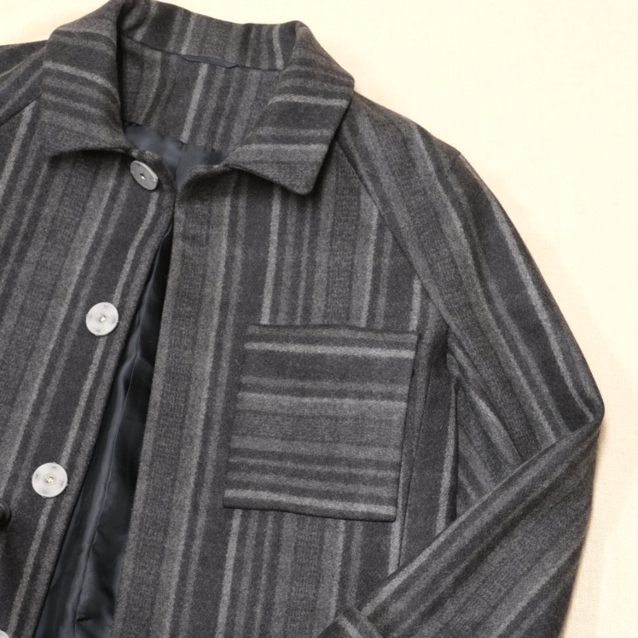 ストライプを楽しむデザインのカシミア混素材のコートは、「ラグランスリーブの切り替えデザインで、セットインスリーブのシルエットを実現しました」、といっても理解していただけないと思いますが、袖の型紙が【図4】のようになりました。