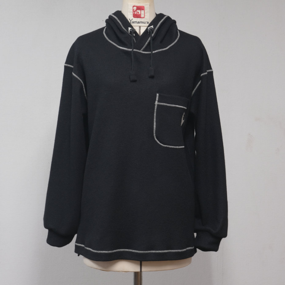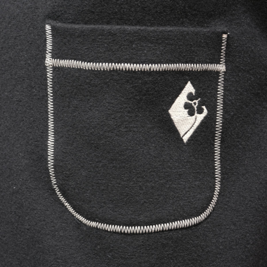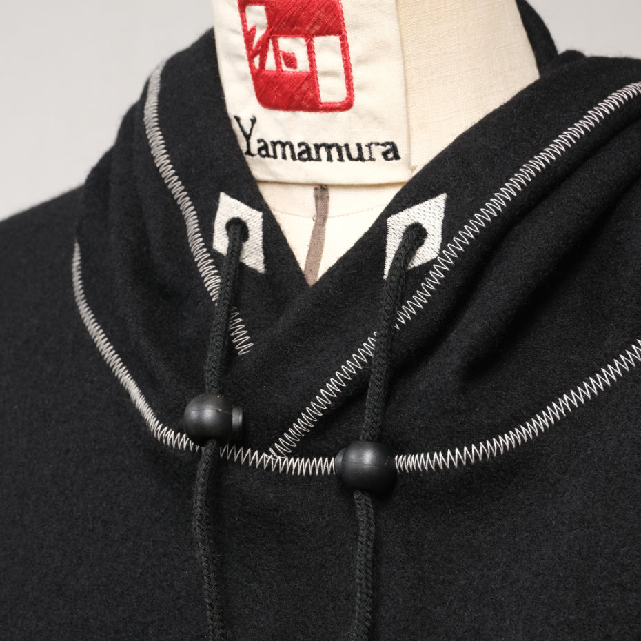 その他には、ポケットの刺繍と、フード部分にヒモを通す穴に、装飾を兼ねた刺繍を施し、これら全ての工程を、一台のミシンで仕立てることができます。