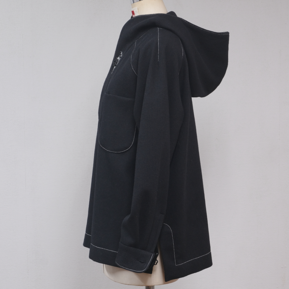 色の違えたステッチは、よく採用している手法ですけど、今回は、クルッとした前の曲線がポイント。