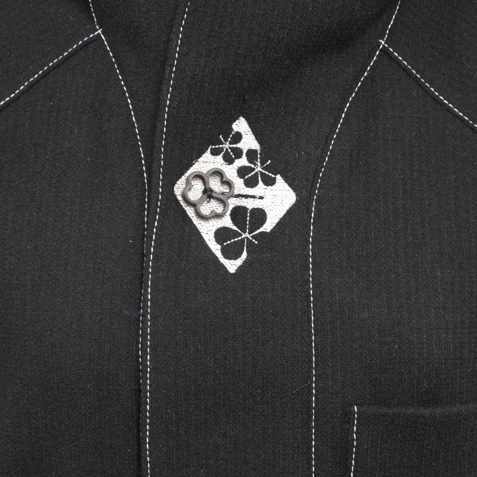「せっかく道具がそろっているので」という簡単な理由で、ボタンと刺繍ボタンホールを一体にしたデザインを考えていて、たとえば「雪の結晶(ボタン)と、雪景色(刺繍)」とか、「バラの花(ボタン)と、ツル(刺繍)」とか、いろいろ検討してみたものの、とりあえずこれらは保留にして、いつも使っている「カタバミ」をデザインし直しました。
