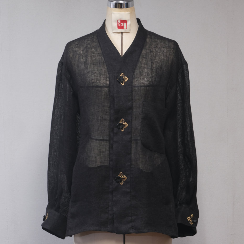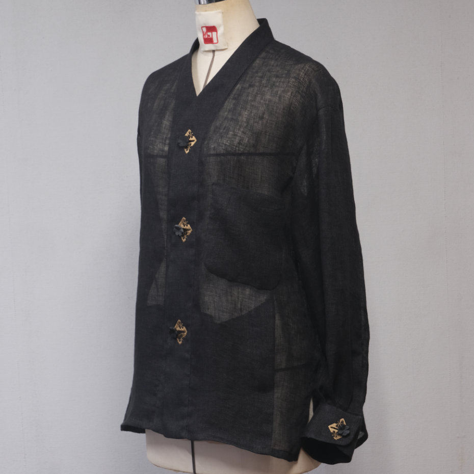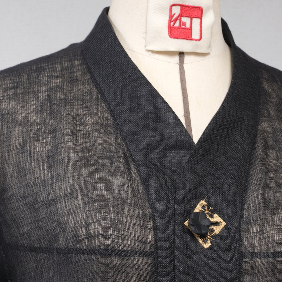 軽やかな薄手のリネン素材に、着物の意匠をそっと忍ばせて。