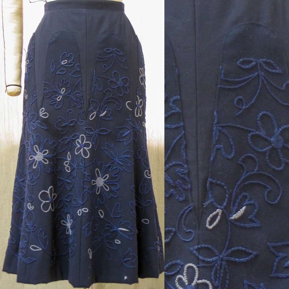 きれいな刺繍が施されたスカートの、ウェストからヒップあたりまでの幅を広げたいとのご依頼。