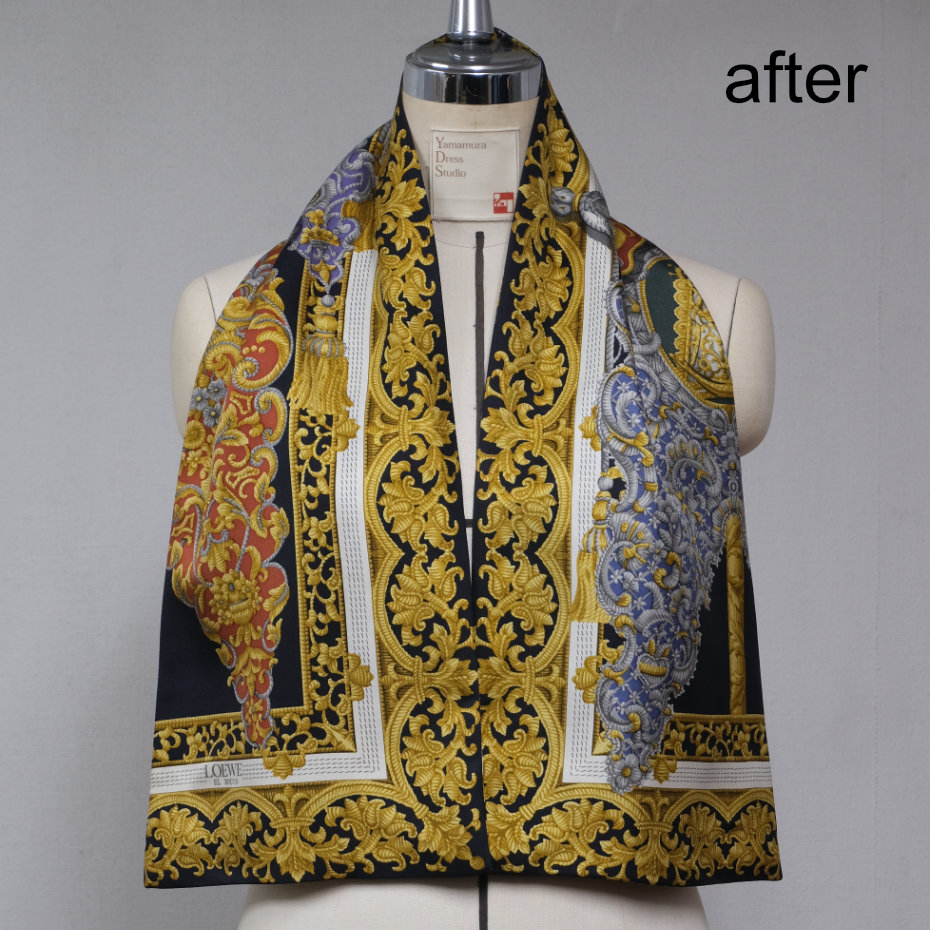 「着なくなったブラウス を何とかしたい」とのご依頼があり、スカーフ にリメイク しました。