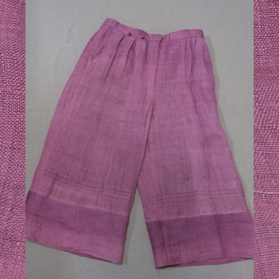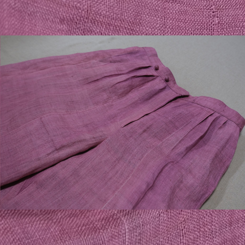 この、麻のピンクのワイドパンツスは、スカートからのリメイクです。