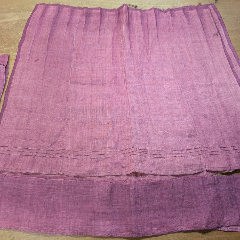 スカートは、たっぷりとした分量の一方向タック仕立てで、天然染料による染色と思われますが、経年による色落ちがありました。